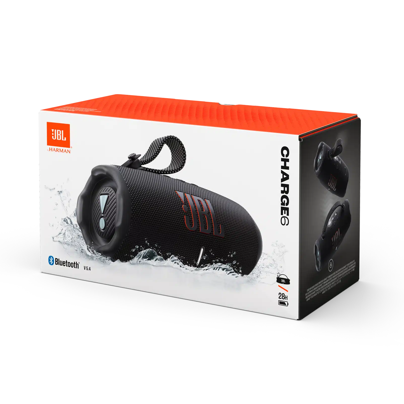Parlante JBL Charger 6 en color negro, con sonido potente y graves profundos para cualquier ocasión. Cuenta con batería de larga duración, conexión Bluetooth estable y función de carga para tus dispositivos. Resistente y portátil, ideal para fiestas, viajes y uso al aire libre.